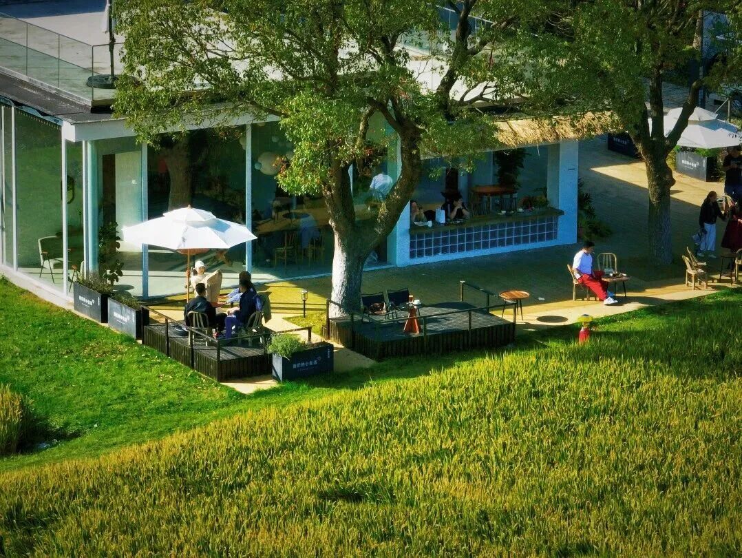 循着稻香往深处走,稻浪托起一只“盒子”——桃坞稻田咖啡。木梁、微水泥与玻璃被风、光与虫鸣重新“编曲”,室内像田野的倒影,每一把椅子、每一只杯盏都成了会呼吸的稻穗。坐进落地窗旁,咖啡油脂旋出的金圈与窗外稻浪同频荡漾;一口下去,舌尖是先苦后甘的豆子,眼底是“粒粒皆辛苦”的秋阳——原来,丰收也能被萃取成一杯手心的温度。