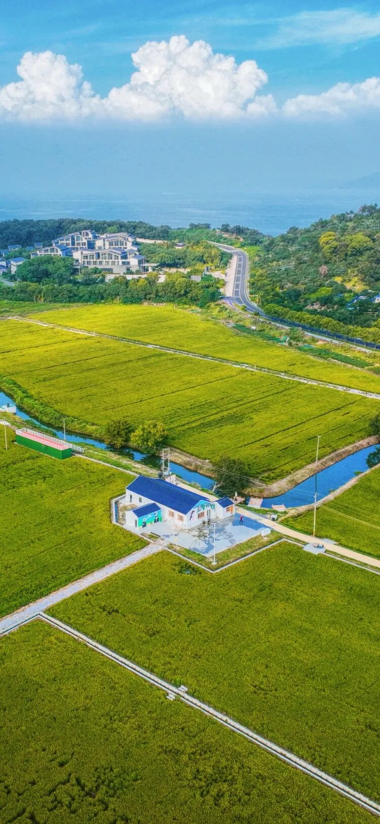 从环山东路到群丰高标准农田,秋风掠过,稻穗点头,万顷金波便一层推着一层荡开,像大地在轻轻呼吸。农民们握镰的手掌布满老茧,却在这起伏的浪纹里写下最柔软的抒情诗——每一粒碾作白米的金黄,都是把晨露与月光、把弯腰与汗珠一起封存的秋天邮戳。