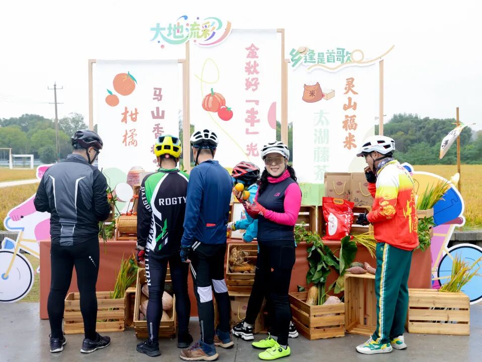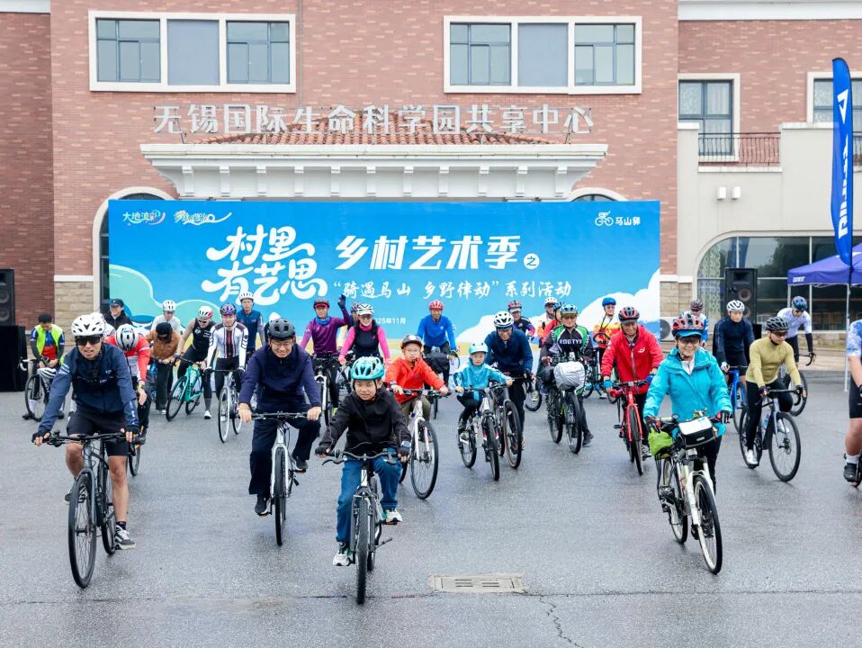 本次活动由无锡太湖国家旅游度假区与无锡市农业农村局共同指导,由无锡捷安特俱乐部负责骑友招募。活动以“艺术赋能乡村,骑行带动消费”为主线,尽管天色微阴,但50位骑行者依旧满怀热忱,从梅梁路88号驿站出发到桃坞驿站,线路总长13公里,融合了山水骑行、非遗文化、吴歌表演与村咖市集,打造一场流动的、沉浸式的乡村艺术盛宴,同时也串联起一条崭新的文旅消费带。