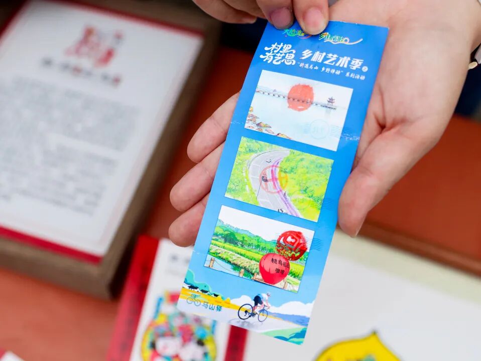 终点的桃坞驿站是本次活动的“压轴惊喜站”。这里设有非遗吴歌表演、纸马拓印体验、农产品市集和文创展销等精彩内容。捷安特俱乐部还与骑友进行抽奖互动,现场气氛热烈。