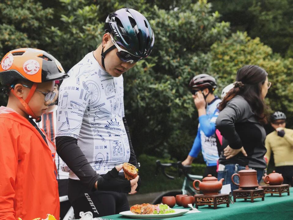骑行途中的弘阳洛克菲花园酒店点位,是本次活动的“能量补给站”与“特色体验站”。这里不仅为骑行者准备了充足的饮用水和水果,让大家在中途快速恢复体力;更同步展示了酒店的冬季特色温泉、马山精品茶叶以及酒店特色醉蟹,骑行者们在补给间隙,既能提前了解冬日温泉的惬意体验,又能近距离感受本地特色美食,让中途休整成为一场“身心双重享受”。