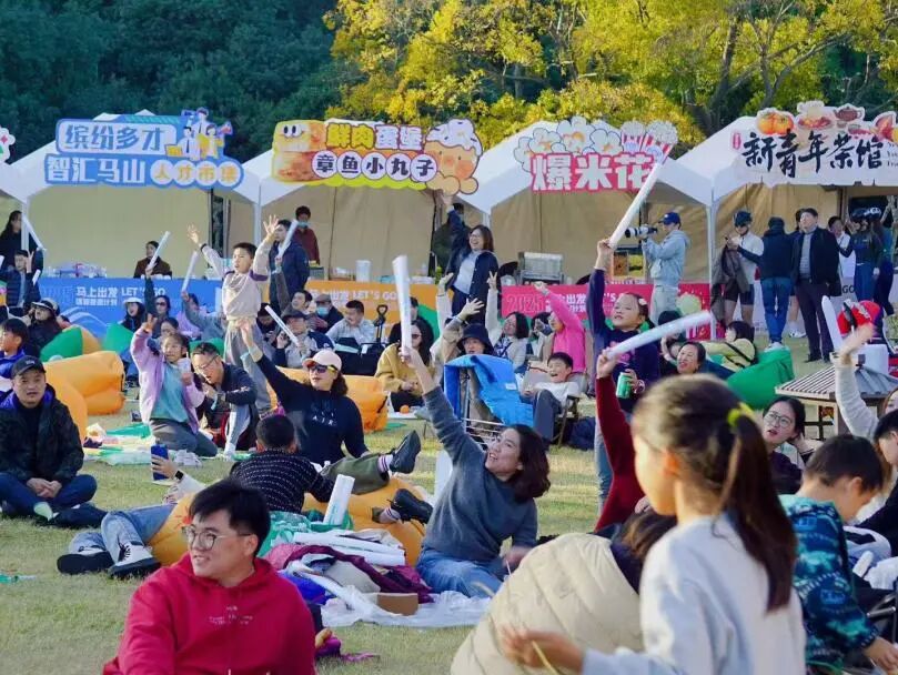 除主舞台演出外,活动现场还设有机器人、机器狗进行热场互动,并结合创意市集、互动打卡、露营烧烤等多个功能区,构建出层次丰富的体验场景。市集区内,官方文创、特色餐饮等摊位吸引了大量游客驻足。