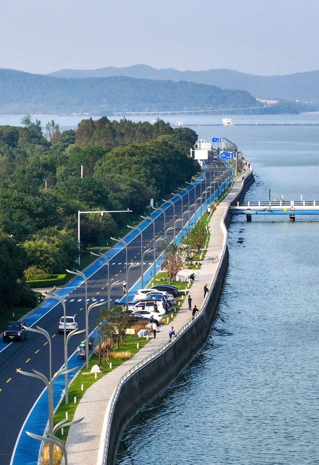 而八十多年后的今天,七里堤迎来“华丽转身”。如今的它,有了一个更诗意的名字——七里风光堤。5.3公里的岸线,串联起太湖的波光与山色。而最近,一场“微改造”正让这条老堤焕发新颜——着力打造漫步道、跑步道、骑行道“三道贯通”的慢行系统,甚至还新增了3公里数字跑道、AI采集器等智能设施,让传统堤岸焕发科技感与年轻力。