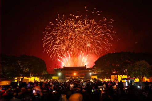 总台春晚分会场首次落地无锡 令整座锡城火爆出圈 零点马山拈花湾的浓墨出场惊艳了众人 满园彩灯长明 璀璨的视觉盛宴 百米火龙花火秀 点龙头 行好运