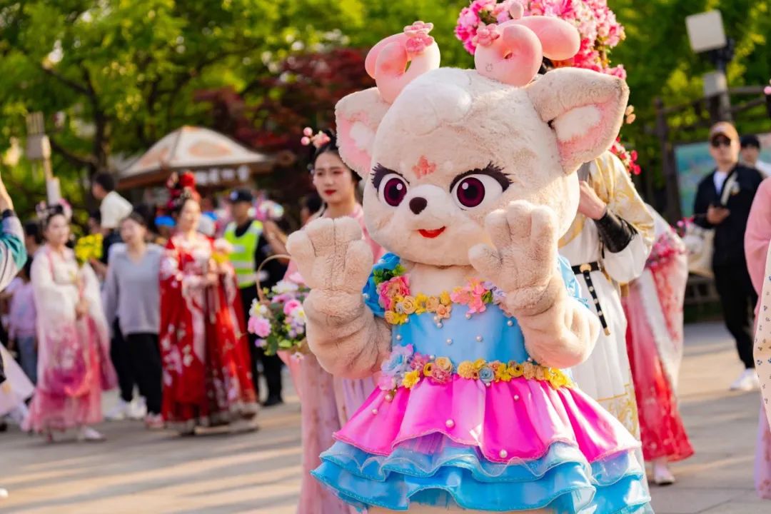 拈花湾超人气演艺互动项目花朝大巡游,场场爆满。萌哒哒的鹿樱樱C位出场,和众花神一起沿着香月花街,一路载歌载舞,与游客亲密互动。漫步拈花湾,缤纷的演艺目不暇接。身着华服的演员们为游客带来一场场精彩绝伦的视觉盛宴,把欢乐和笑声带给现场的每一个人。在拈花湾的每一分钟,都不会无聊。