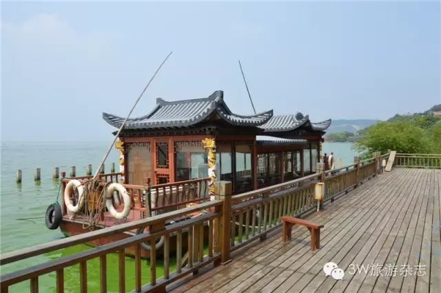 面朝太湖,沙鸥翔集、锦鳞游泳。如此壮阔惬意的景致怎能不跌入游客安静的美梦?毗邻湖畔,一栋栋木屋掩映在绿色之中,凭栏望去便是那波光粼粼的太湖水,夕阳斜照里的片片光影让看风景的人也与这湖光山色成了最美的风景。