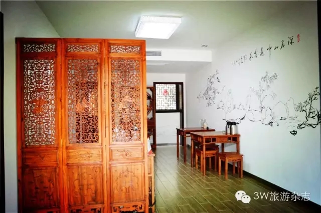 而在这里休憩也是安然。客栈内46间客房,87张床位可同时满足130人的投宿之需。夜晚打开窗来,蝉鸣蛙叫入耳,不似城里的喧嚣聒噪,更有了“蝉噪林愈静,鸟鸣山更幽”的旷远之感。