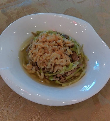 扣三丝,汤色清澈,滑爽鲜香。