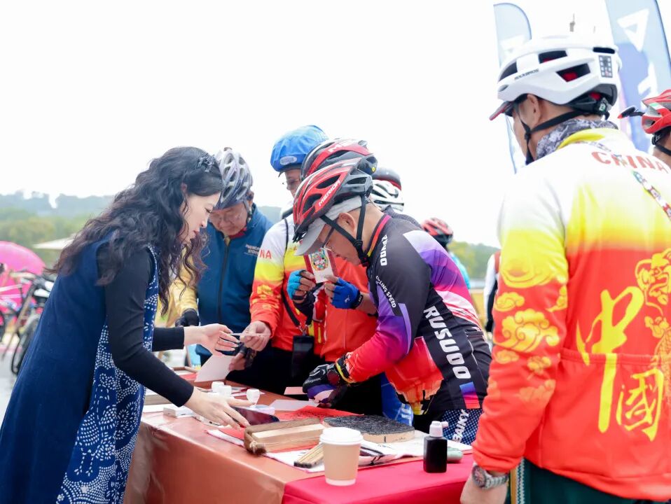 终点的桃坞驿站是本次活动的“压轴惊喜站”。这里设有非遗吴歌表演、纸马拓印体验、农产品市集和文创展销等精彩内容。捷安特俱乐部还与骑友进行抽奖互动,现场气氛热烈。