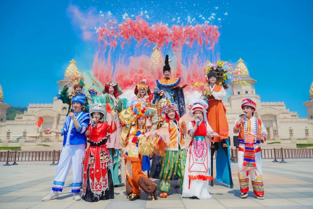 当宏大国乐响起,《歌唱祖国》的旋律萦绕耳畔,游客们自发加入集体快闪,绚烂烟霞与庄严梵宫交相辉映,歌声与欢呼声交织,在庄严与浪漫中诉说对祖国的祝福,这样的视觉与情感双重盛宴,绝对是这个假期独一份的记忆。