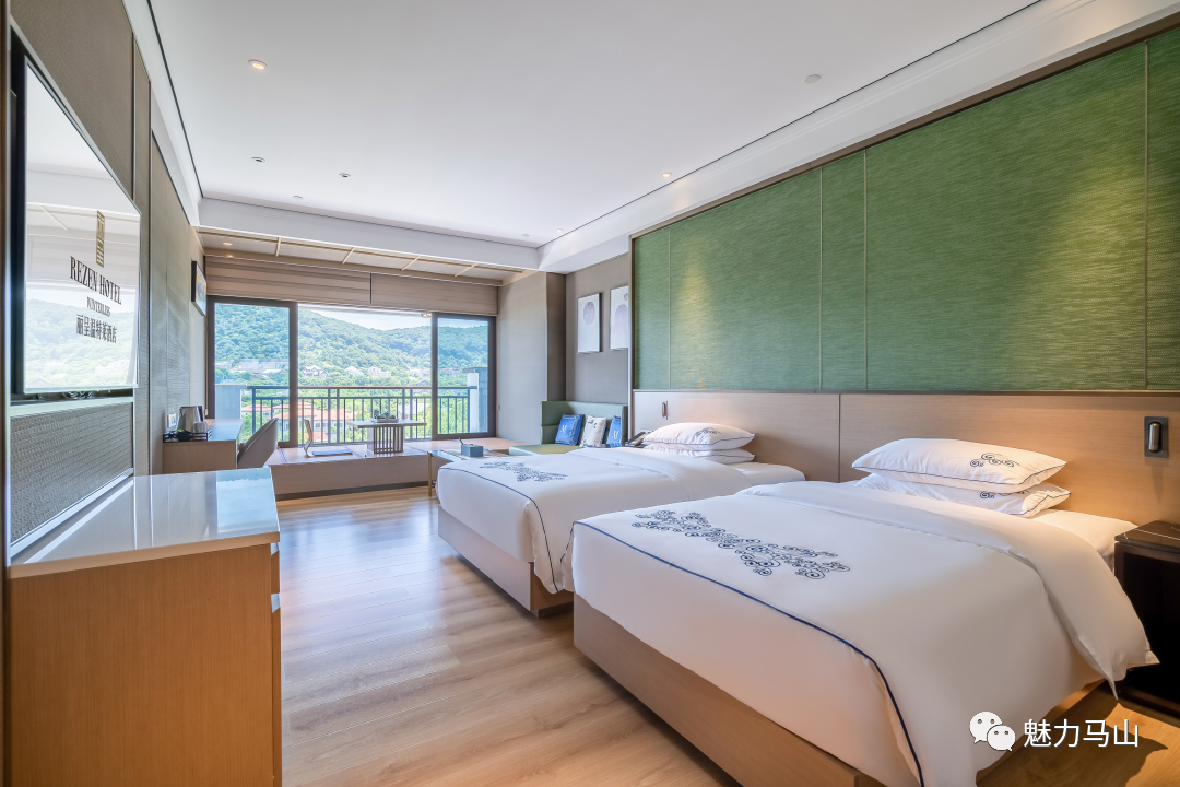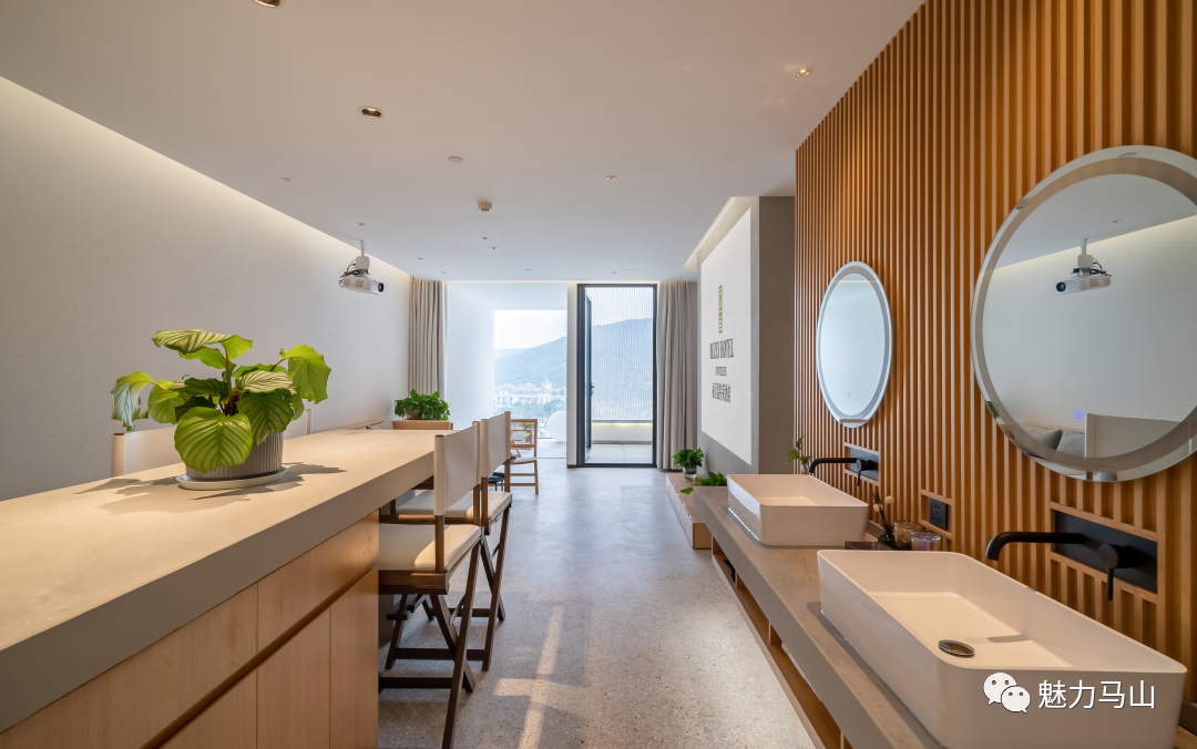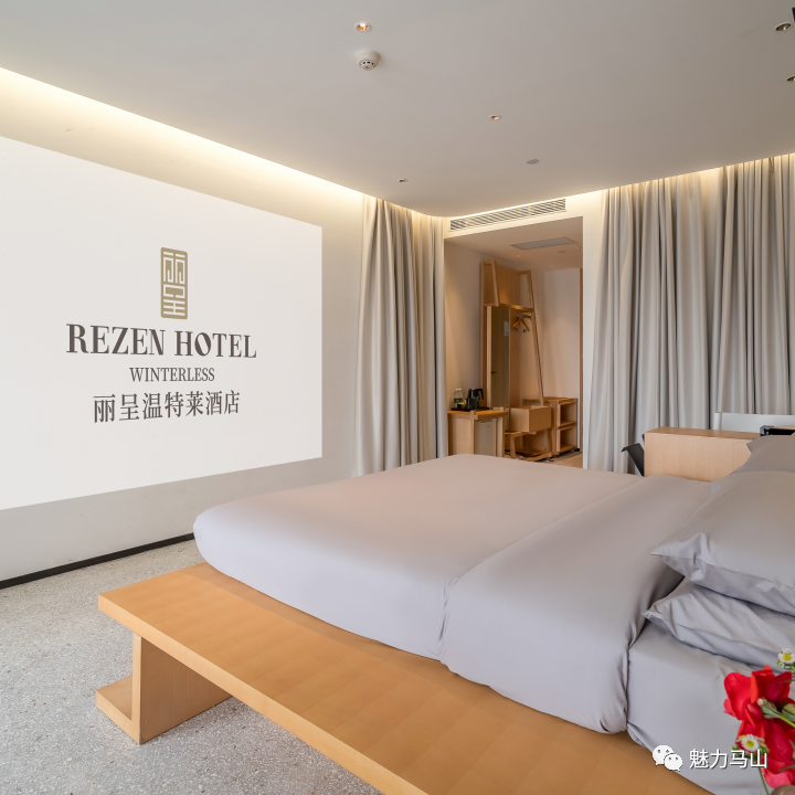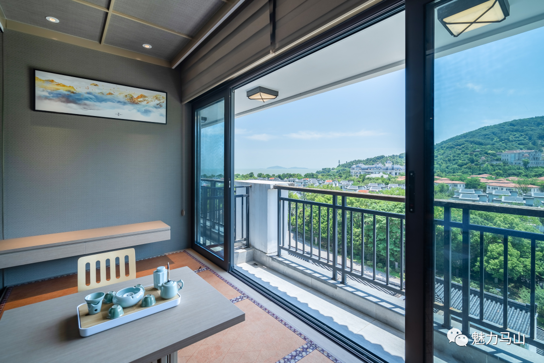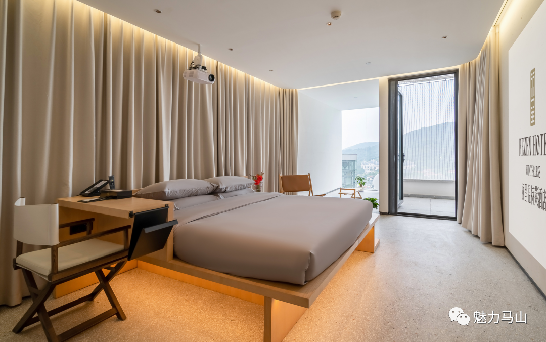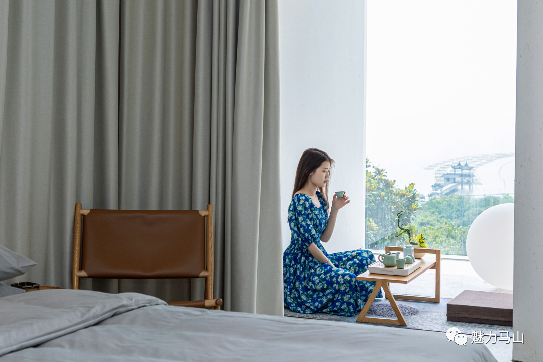 房间设计遵循法式极简风格,每个房间都可以看到太湖,并配有独立的冥想空间以及现代化投影设备。