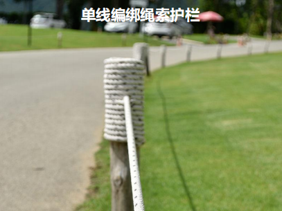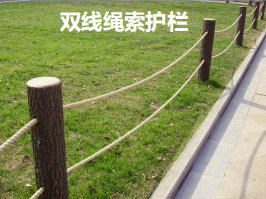 安全栏杆设计:对于坡度较大或单侧存在大斜坡的步道路段设置防护栏杆。防护栏杆采用预制仿木方桩作为栏杆立柱,横向采用防腐粗麻绳作为防护横档。