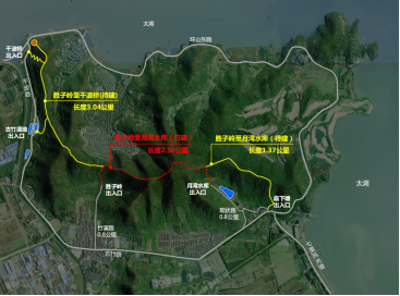 拓展线路长度:全线总长7.47公里,其中森林徒步道3.87公里,平地步行道1.2公里,平地骑行道2.4公里。