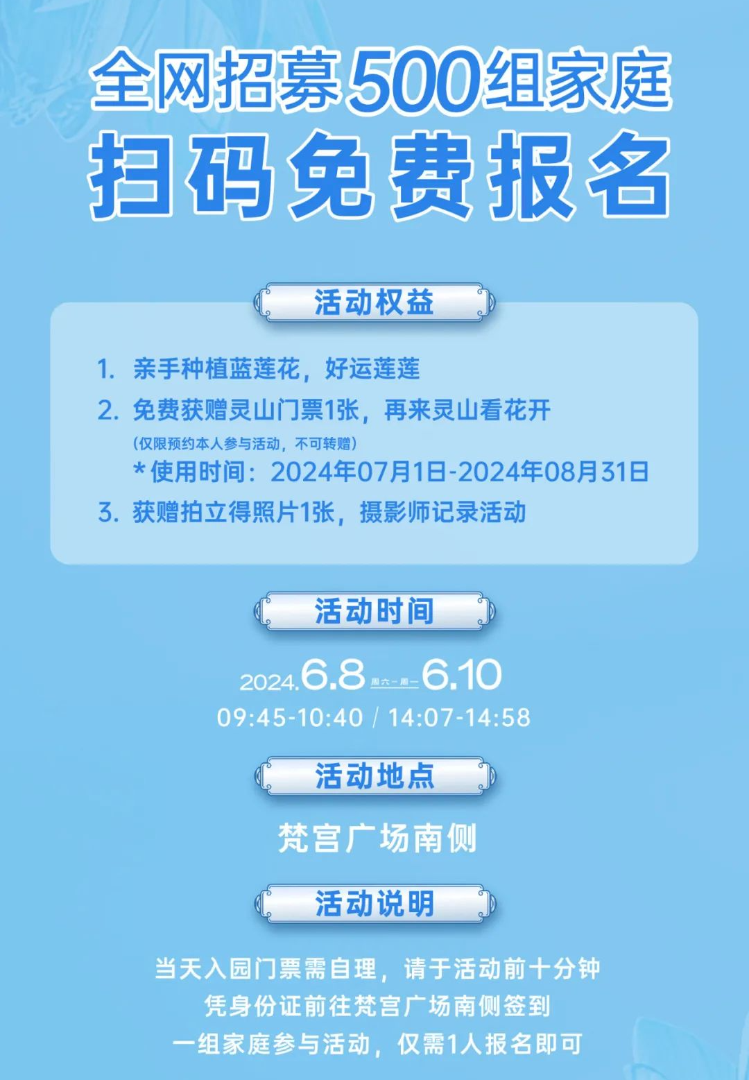 端午节小长假三天,灵山免费邀请500组幸运游客,在香水海畔亲手写下心愿,种下一颗蓝莲花,祈愿好运“莲莲”。