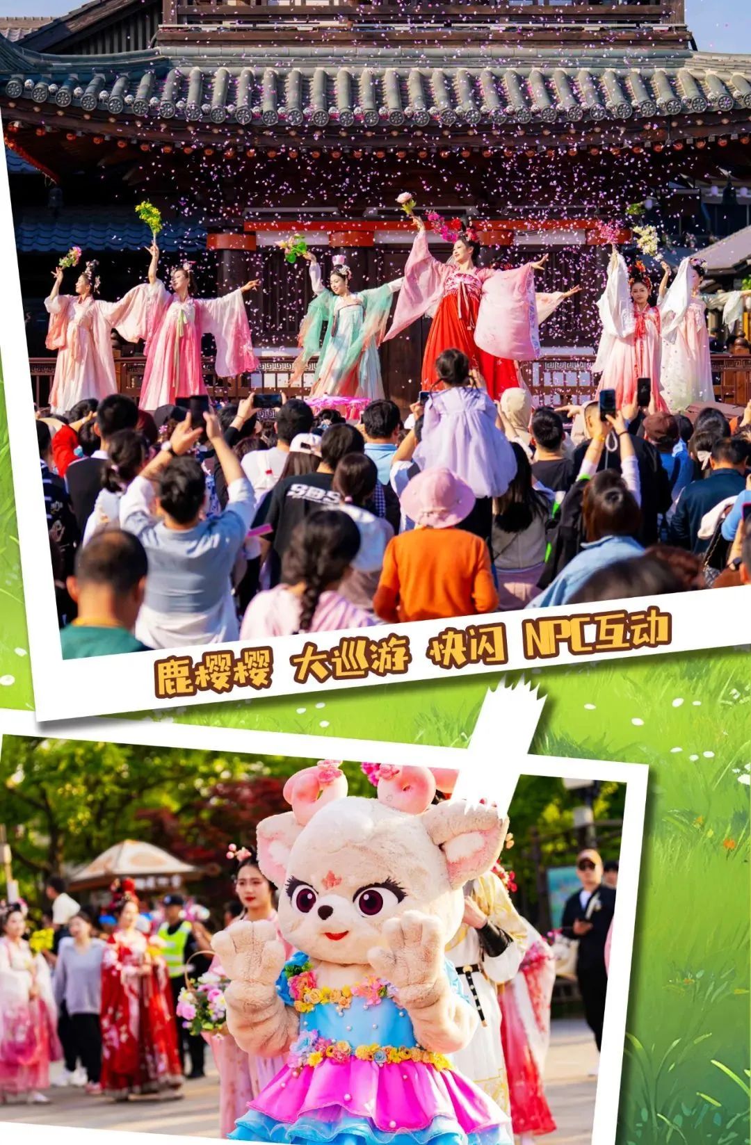 拈花湾超人气大巡游,全员NPC互动,场场爆满。萌哒哒的鹿樱樱C位出场,和十二花神一起沿着香月花街,一路载歌载舞,与游客亲密互动。