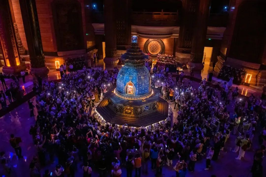到灵山梵宫感受清净庄严,赏珍宝荟萃,观流光溢彩。看充满着精深悠远的文化艺术气息大型音乐史诗情景剧“灵山吉祥颂”、动态文化体验“地涌宝塔”;观演九龙灌浴,祈愿花开吉祥。