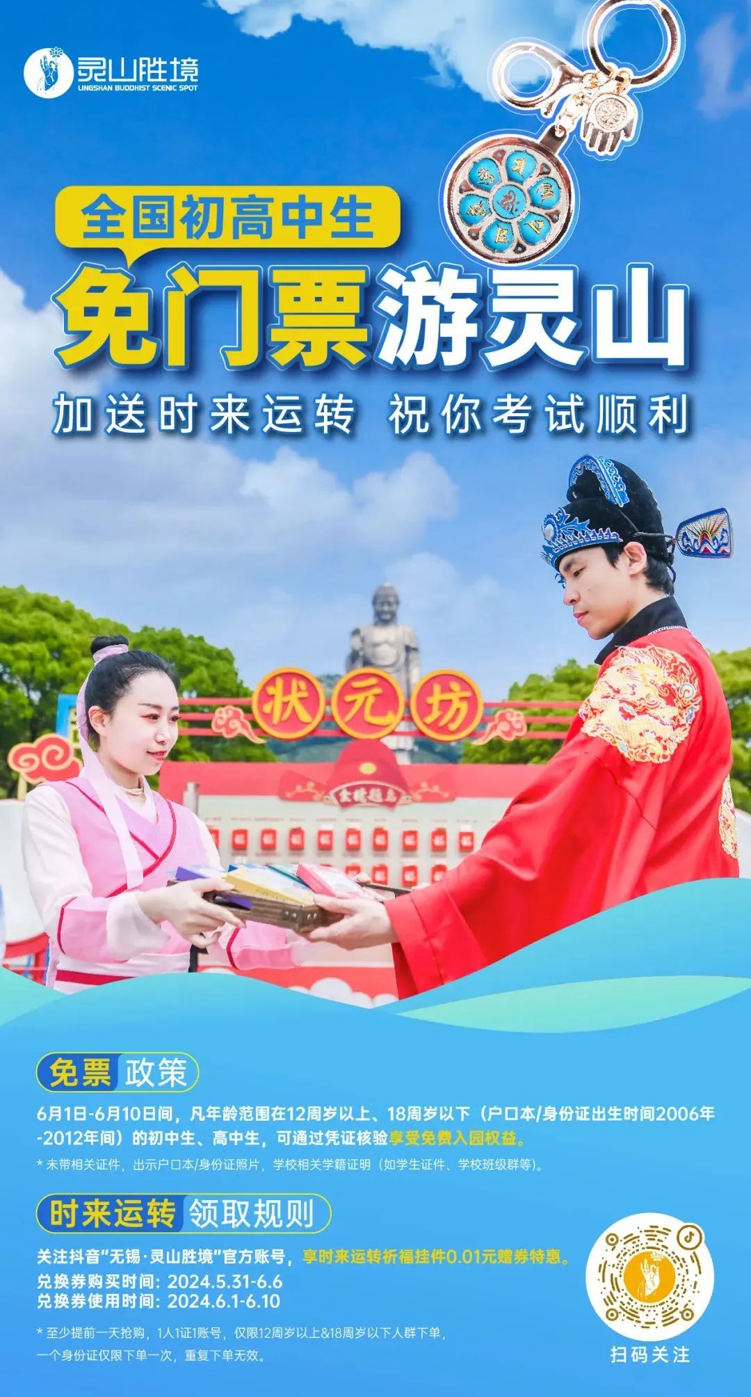 6月1日-6月10日,灵山邀初、高中生免门票畅游,还有状元祈福演艺升级,朱砂启智,状元盖章,祝学子们在这个考试季一举高“粽”,金榜题名!