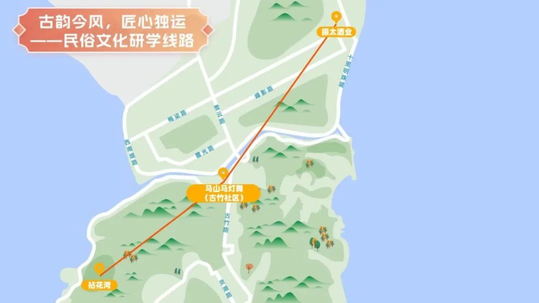 线路:振太酒业——马山马灯舞(古竹社区)——拈花湾