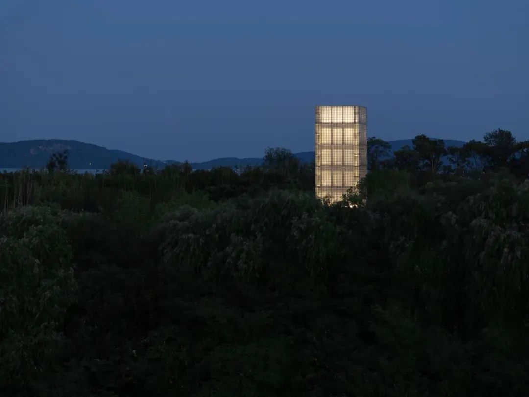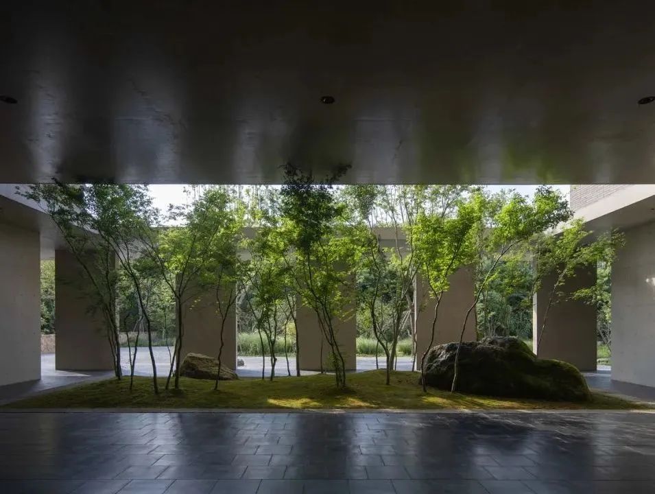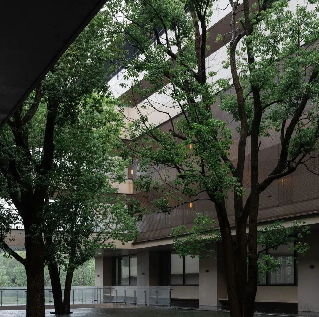 步入息壤,仿佛踏入了一幅流动的江南水墨画。中庭水院,一汪碧水倒映着蓝天白云,香樟轻拂,带来阵阵自然的低语。雨露阁内,听雨观澜,自然的即兴演奏让人心旷神怡;晴朗时分,阳光在清水混凝土墙面上缓缓流淌,时间的痕迹在这里变得柔和而温暖。夜幕降临,流光塔如灯塔般指引方向,让心灵得以栖居。