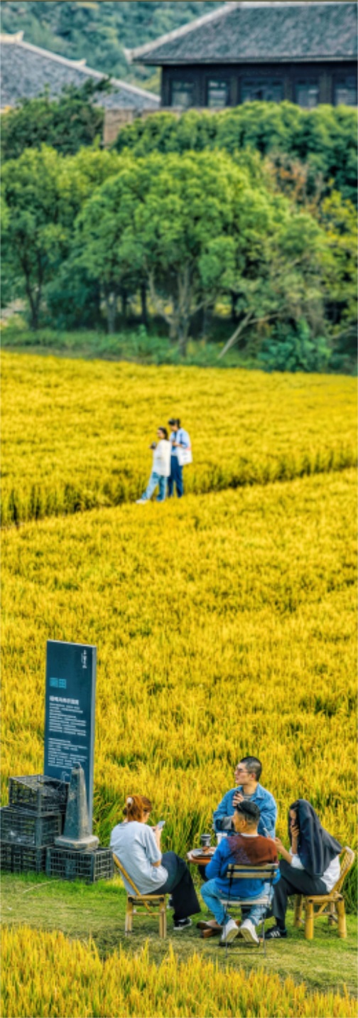 和时茗园的安逸形成鲜明对比的是,秋日的小田里始终热闹非凡,没有人能够拒绝一片金黄灿烂的稻田,随着小火车穿行其间,品味丰收味道,田间地头一杯咖啡,感受树下的慵懒,甚至体验一下把你宠上天的直升机,切身体会低空经济带来的不一样的体验。不论多大年纪,不管平时生活中扮演什么角色,从走进这片田野起,每个人都拥有了幸福。