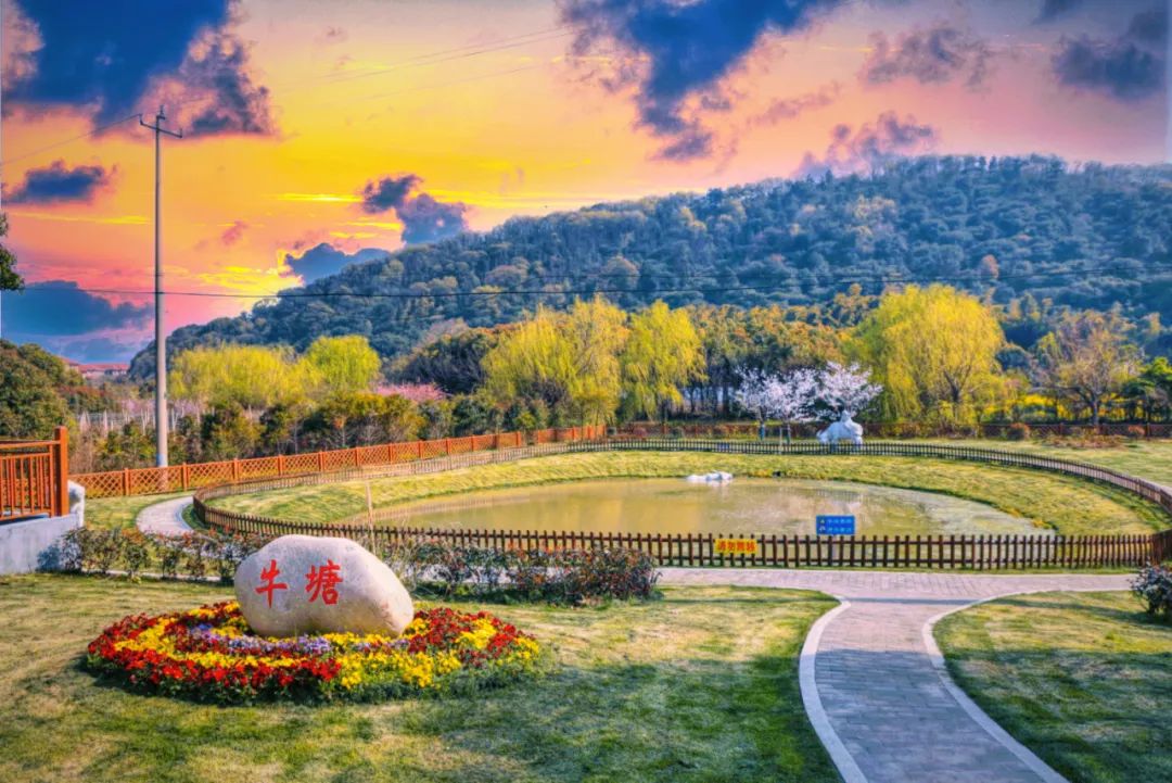水清岸绿的牛塘,仿佛依稀可见当年农夫牵着牛走过,黄牛哞哞低饮,水波荡漾,泛起圈圈涟漪的场景,耳边似乎还能传来顽皮的孩童在牛背上肆意玩耍的嬉闹声。