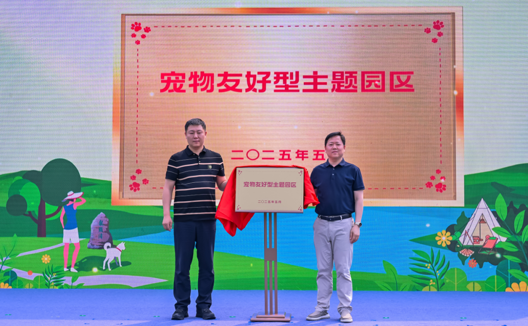 活动现场,市文化广电和旅游局副局长张皓与市农业农村局四级调研员过惠东共同为无锡首个宠物友好型主题园区揭牌;
