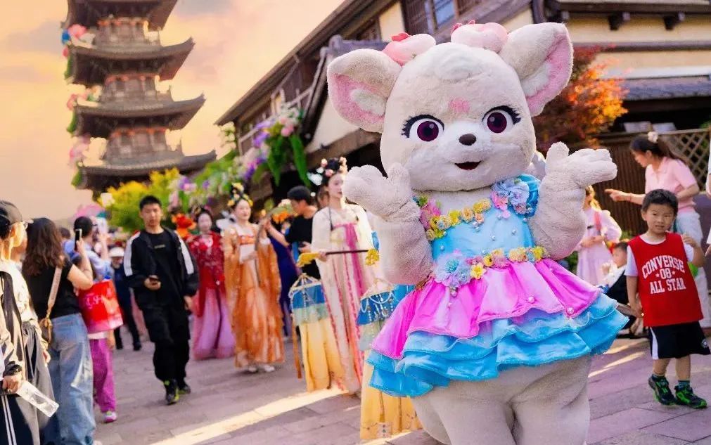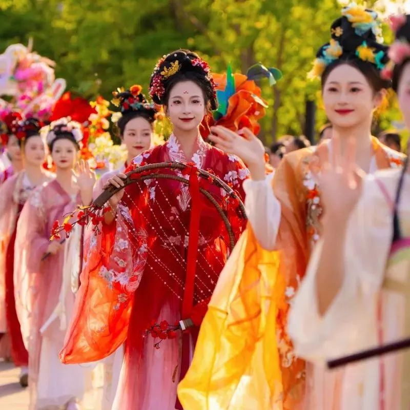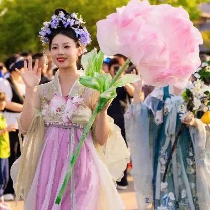 端午期间,每天百场唐风演艺,形式丰富多样,载歌载舞,人气爆棚。萌萌哒鹿樱樱,与游客亲密互动,欢声笑语不断。