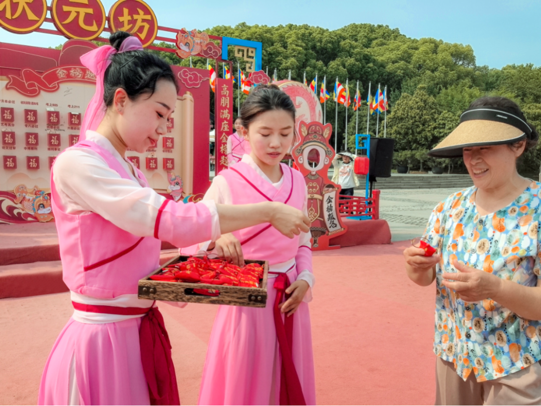 端午期间,现场设置多个NPC互动演出,沉浸式互动,趣味多多,游客与NPC互动完成任务,可获得拈花通宝币,去兑换指定活动体验。