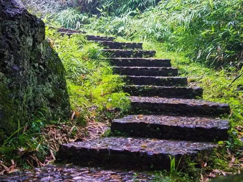 从胜子岭牌楼往深处走,便是冠嶂古道。冠嶂为马山主峰,登高眺远,七十二峰沉浮于万顷碧波之中,俯视各湾千家粉墙青瓦掩映在翠竹绿树之中,古道蜿蜒其中,这就是古时人们登山观湖赏景的景观山道。