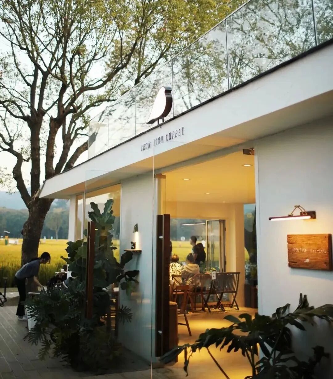 小南湾的“栖鸟咖啡”建于山林湖田间,将咖啡香与乡野相融;